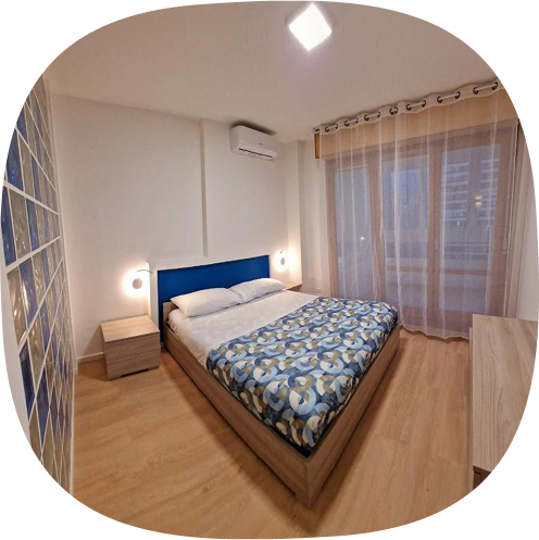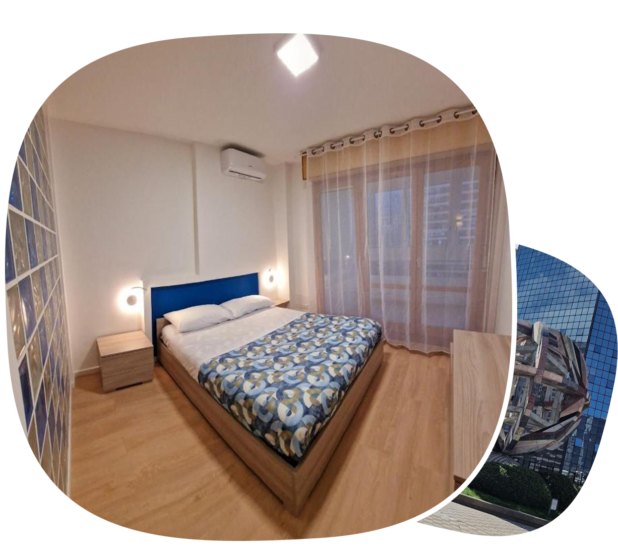 Al 12° piano del Centro Direzionale di Napoli, il nostro appartamento con due camere matrimoniali, cucina, soggiorno e terrazzo unisce design contemporaneo, comfort e una posizione strategica.